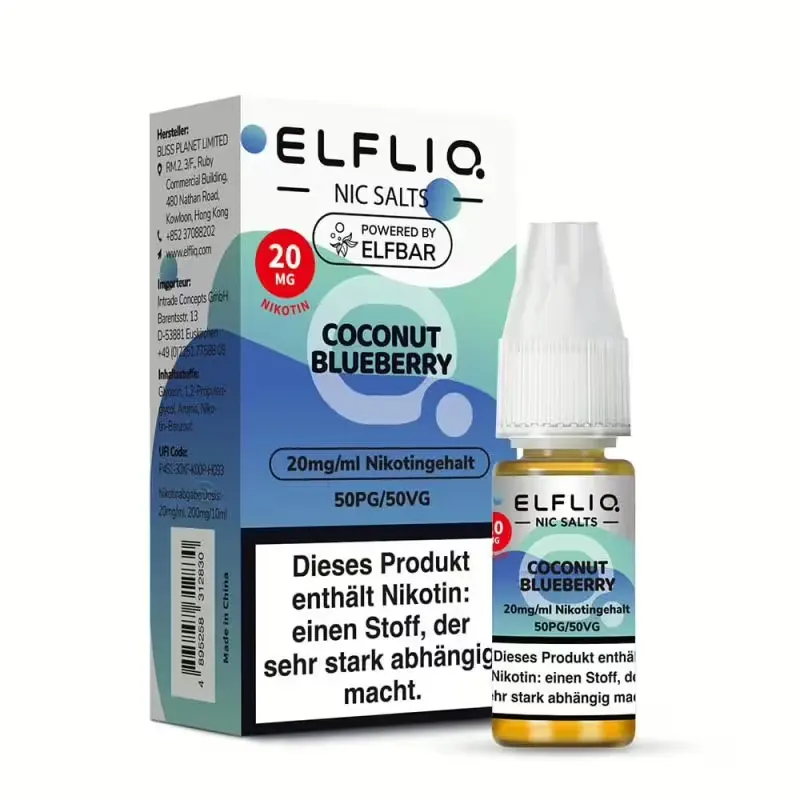 Wenn du ein harmonisches Nikotinsalz Liquid kaufen möchtest, das cremige und fruchtige Akzente vereint, ist Elfliq Coconut Blueberry die richtige Wahl. Erhältlich in 10 mg oder 20 mg Nikotinsalz, bietet es eine schnelle Nikotinaufnahme bei besonders sanftem Throat Hit. Das 50/50 PG-VG Mischungsverhältnis sorgt für klaren Geschmack und eine ausgewogene Dampfentwicklung – ideal für Podsysteme und MTL-Verdampfer im Alltag.
