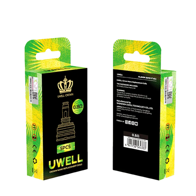 Die Uwell Crown Nano Coils wurden speziell für den Crown Nano Clearomizer entwickelt und liefern ein besonders intensives, sauberes MTL-Dampferlebnis. Dank moderner PRO-FOCS 4.0 Flavor Tech entfalten die Aromen klar, ausgewogen und konstant – ideal für alle, die Wert auf authentischen Geschmack legen. Zur Auswahl stehen zwei Widerstände: Die 0,8 Ohm Mesh Coil bietet bei 16–20 Watt einen etwas offeneren Zug mit samtiger Dampfentwicklung, während die 1,2 Ohm Mesh Coil bei 10–14 Watt ein klassisch straffes MTL-Gefühl erzeugt.
